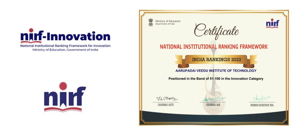 AVIT has been Positioned in the Rank Band of 51-100 in the NIRF Innovation Ranking 2023.