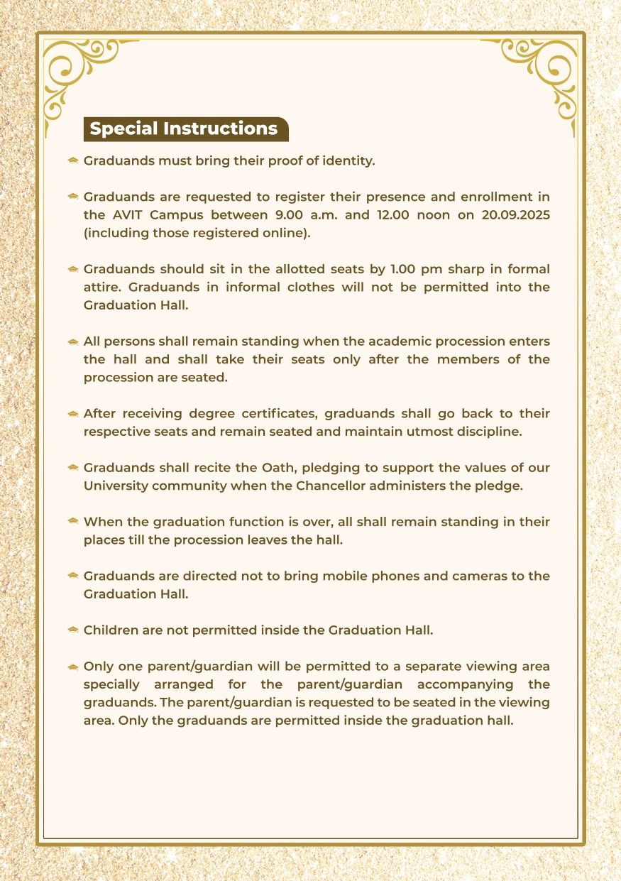 Robes and hood have to be hired from the authorized counter located near Soil Mechanics Lab by giving a refundable caution deposit of Rs.500/-.